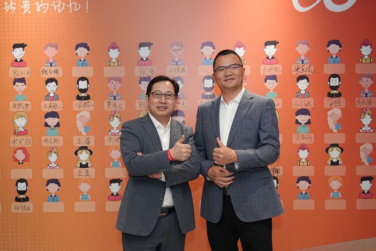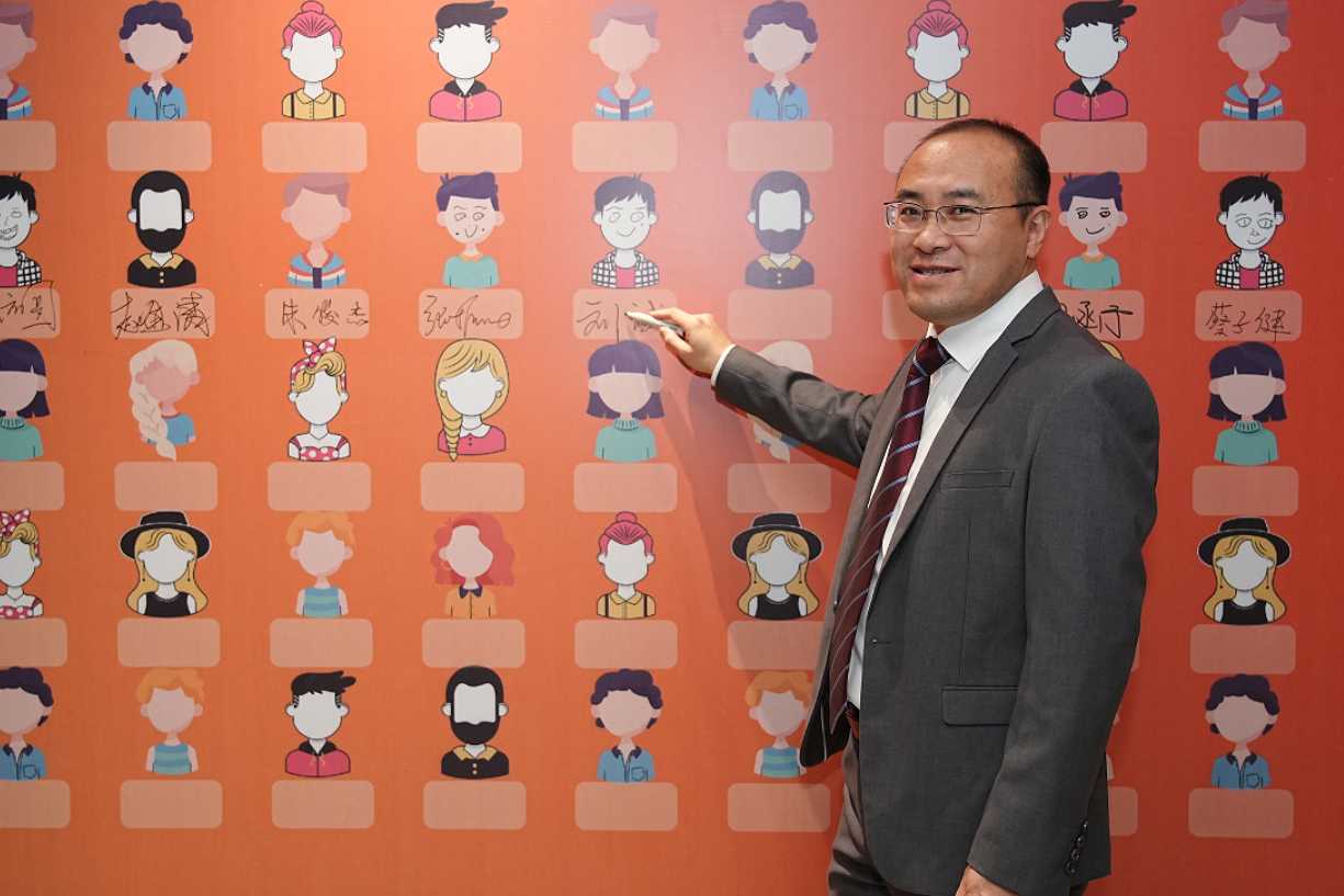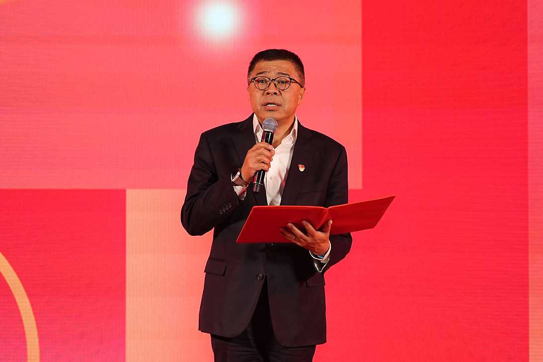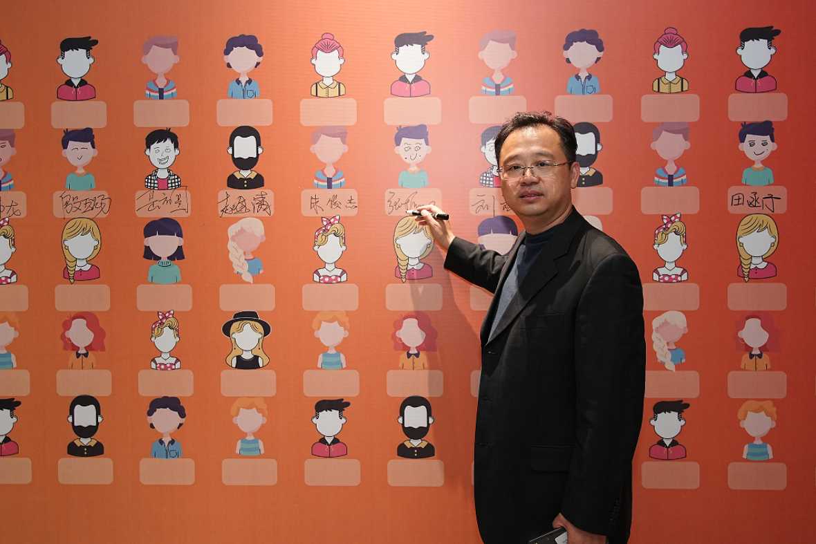 沙龙国际s36科技总裁王功学揭幕2024十九周年视觉宣传标识。