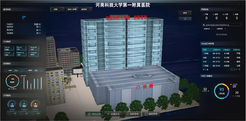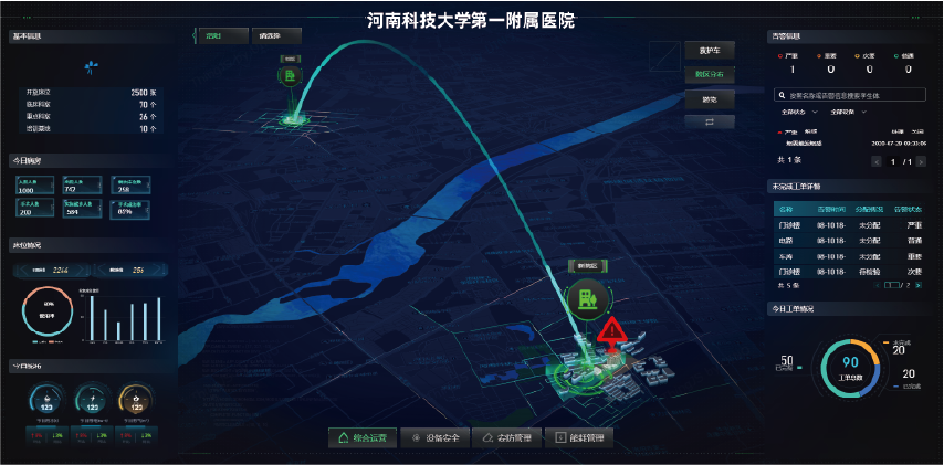 通过建立医院三维空间模型和环境模型,运用AI边缘计算算力盒、仿生人眼传感器、无线定位胸卡等多种技术手段,整合人员定位、车辆定位、医废等危险品以及门禁系统等多项功能,实现设备运行、院区运行实时监控,对异常情况进行快速响应,全面提升调度和应急指挥能力,全面提升医院的综合后勤服务管理能力。