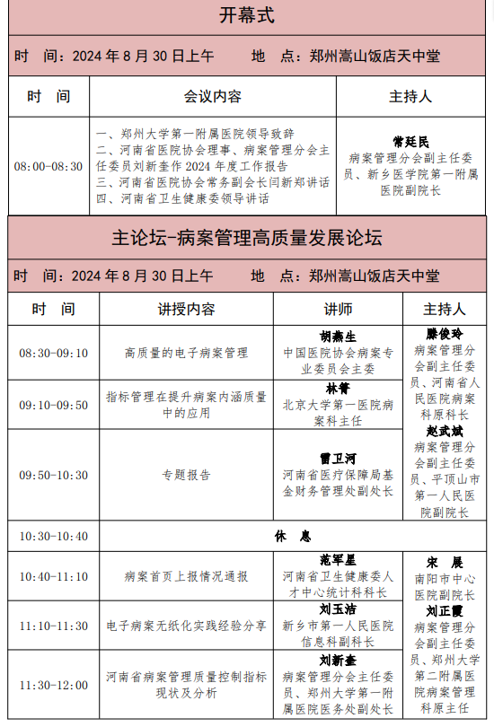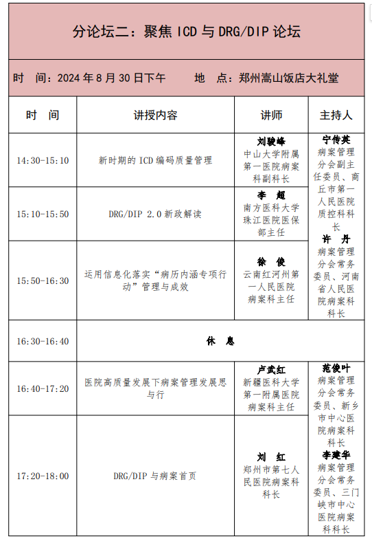8月29日-31日,河南省医院协会病案管理分会2024年会暨病案管理高质量发展论坛将在河南郑州举办。大会以专业技能大赛、主会场开幕式、学术分论坛等方式举行;紧贴病案管理、智慧病案与无纸化、ICD与DRG/DIP等创新应用,邀请国内医院优秀管理者和知名专家学者,分享病案发展的先进理念与实践经验,共探行业高质量发展新路。