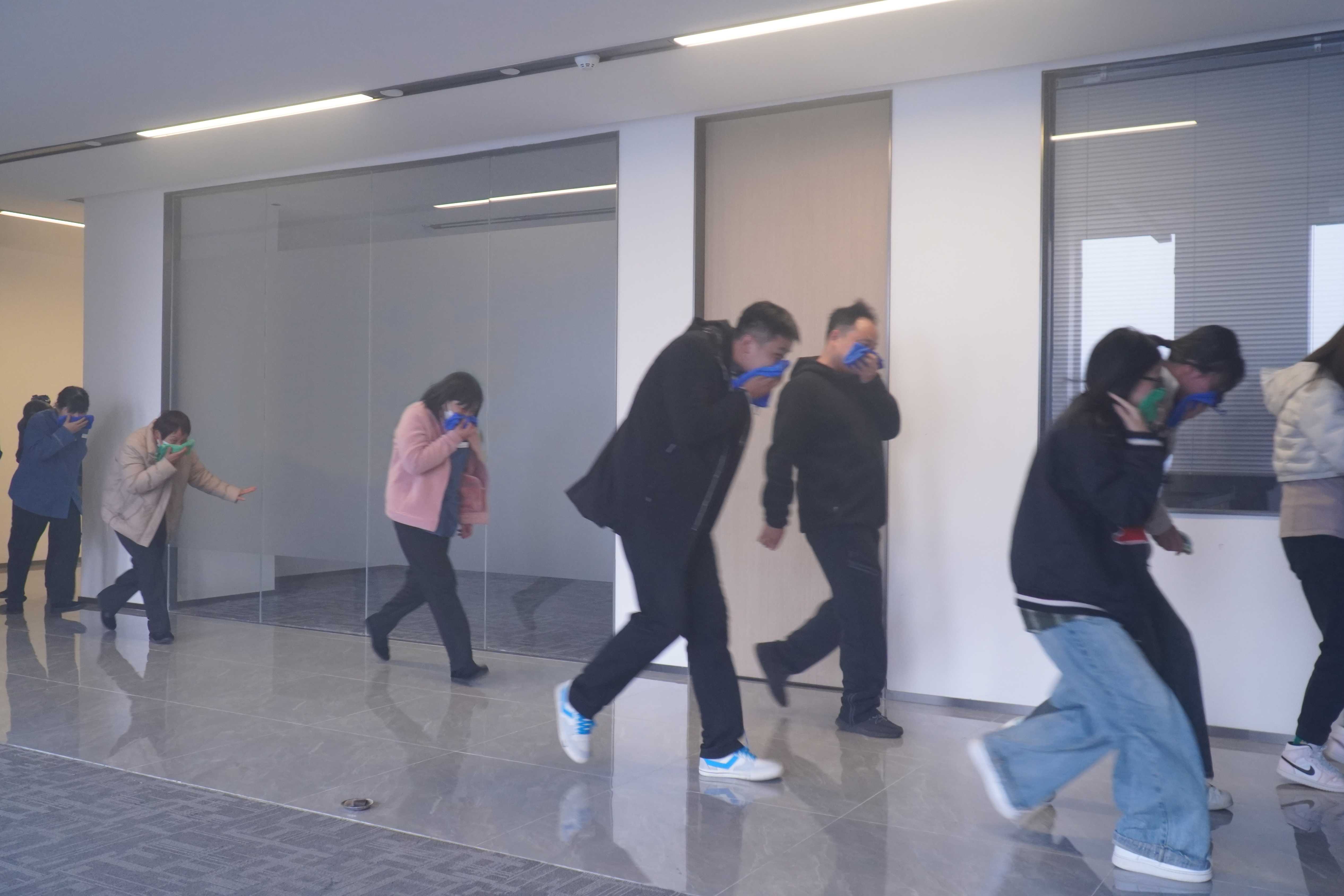 活动设立消防知识讲座,为员工讲解涵盖消防安全法律法规、火灾预防措施、初期火灾扑救方法以及火场逃生技巧等内容,重点介绍消防安全的重要性及实践操作中的注意事项,进一步增强员工消防安全意识。应急演练现场,参演人员迅速按照既定预案行动,用湿毛巾捂住口鼻,低姿势快速有序地向安全出口撤离。演练过程组织有序、流程完备、处置得当,取得了良好效果。