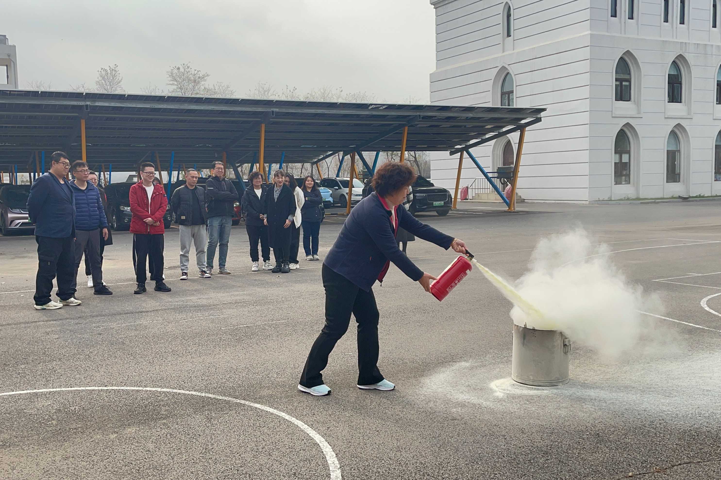 员工在专业指导下进行了干粉灭火器的使用实操。通过亲自操作灭火器扑灭模拟火源,不仅掌握灭火器的正确使用方法,还加深了对初期火灾扑救重要性的理解,有效提升实战能力。
